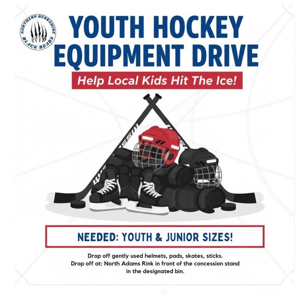 The Northern Berkshire Black Bears are hosting a Youth Hockey Equipment Drive—and we need YOUR help to gear up the next generation of players!